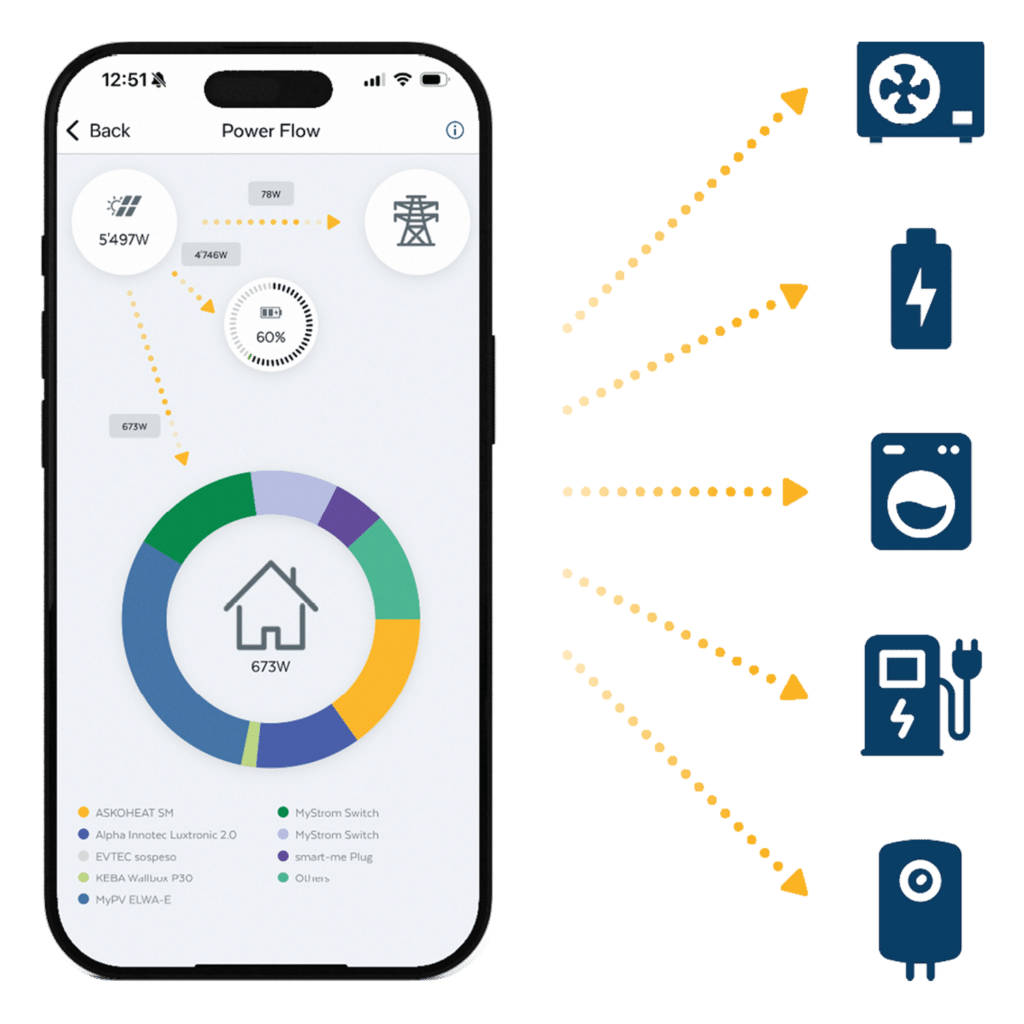 - Visualisierung von Erzeugung, Verbrauch und Einsparungen